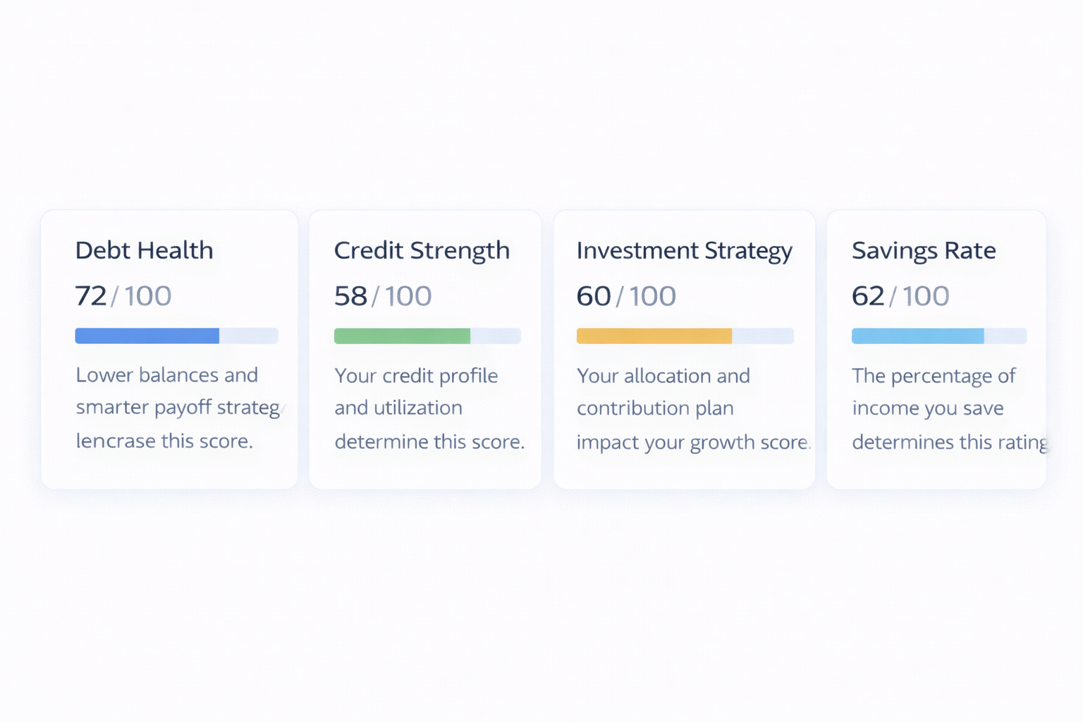 AI evaluates your debt, credit, savings, and investments to generate your personalized score.